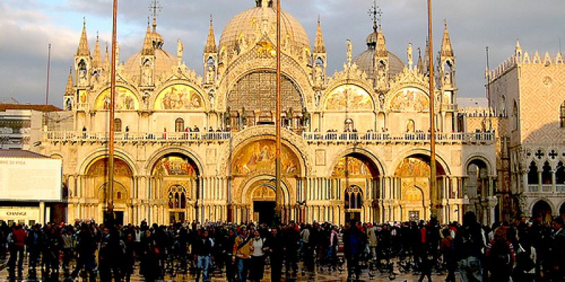 Plus importante cathédrale de Venise, la Basilique Saint-Marc trône elle aussi sur la place Saint-Marc. Construite initialement au IXème siècle, elle sera restaurée suite à un incendie, un siècle plus tard.