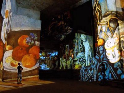 Sur ces 4 000 m2 d'écrans naturels sont projetées d'impressionnantes images et vidéos de douze mètres de haut. Au fil de sa promenade dans l'exposition thématique (se renouvelant tous les ans), le spectateur découvrira mille images au travers de mille perspectives fascinantes.