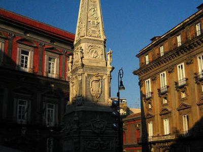 Légèrement plus discrète que la piazza del Gesù nuovo, cette place dispose elle aussi d’une colonne baroque (la « Guglia di San Domenico ») et d’une église du XIIIe siècle très intéressante.